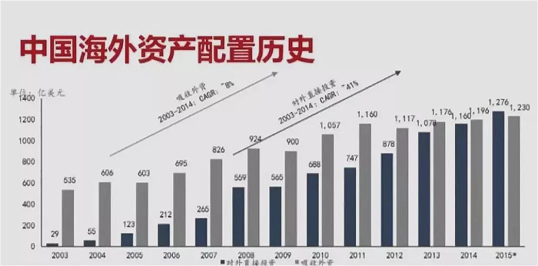 先看下我国刚刚加入WTO不久后的一个数据:2003至2018年,中国的对外投资和吸收外资的体量(中国的招商引资)慢慢持平。也就是说有越来越多的国内购买力选择海外资产配置,那么这背后的原因是什么呢?