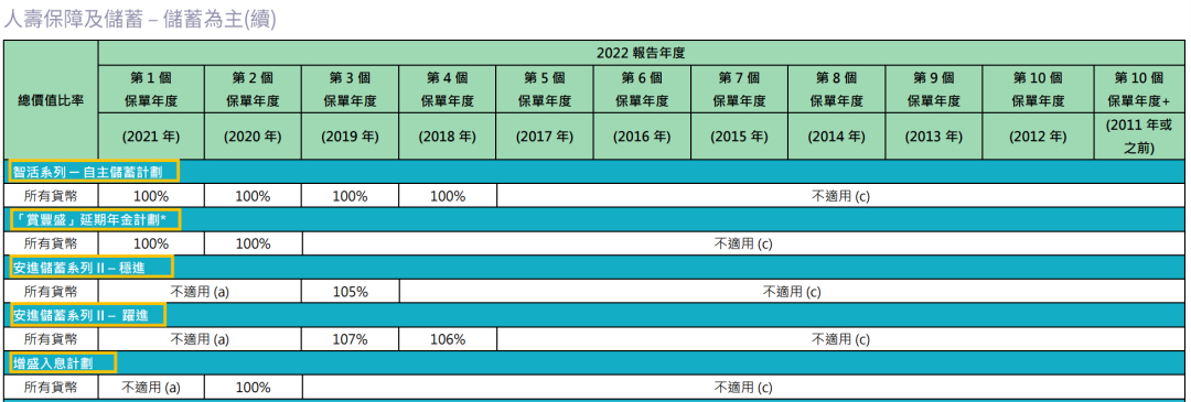 2021年推出了盈御多元货币,22年的总现金价值比率是100%。目前该系列已升级到三代“盈御多元货币3”