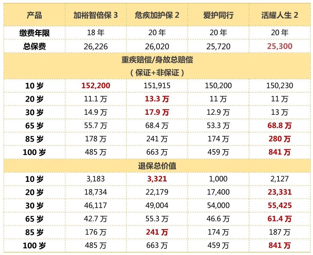 在0岁男孩这年龄段,退保、理赔的长线价值,宏利的「活耀人生2」最为有优势同时保费也是当中最低的;而前期的理赔,保诚「危疾加护保2」更胜一筹。