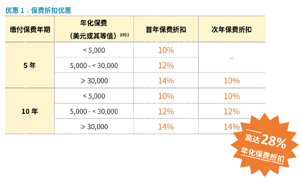优惠:首两个保单年度可享16-20%保費折扣优惠