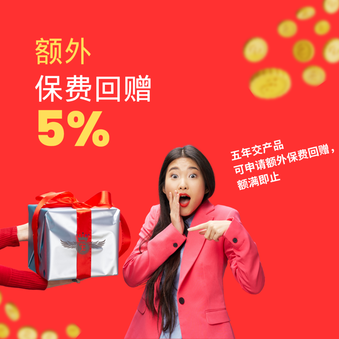 优惠:投保挚汇(5年),基本保费回赠高达25%。