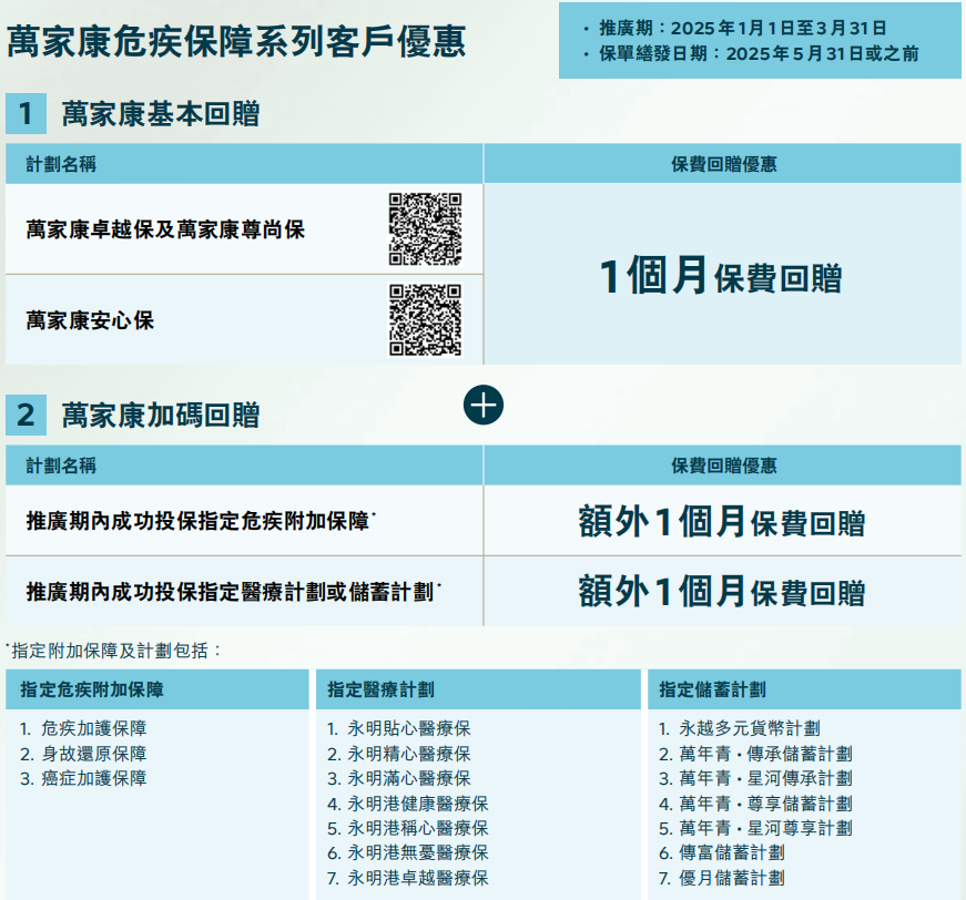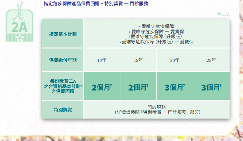 ▲ 提早投保回赠:2025年1月1日至2月28日内投保,增加2%保费回赠,合共高达20%保费回赠。