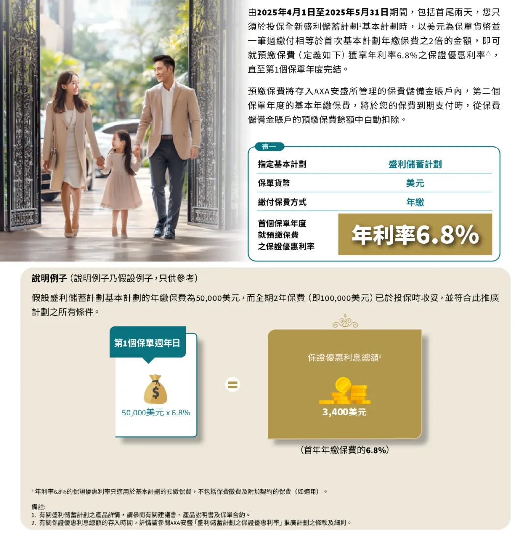 ▲ 投保USD8万及以上可享预缴保证利息4.8%