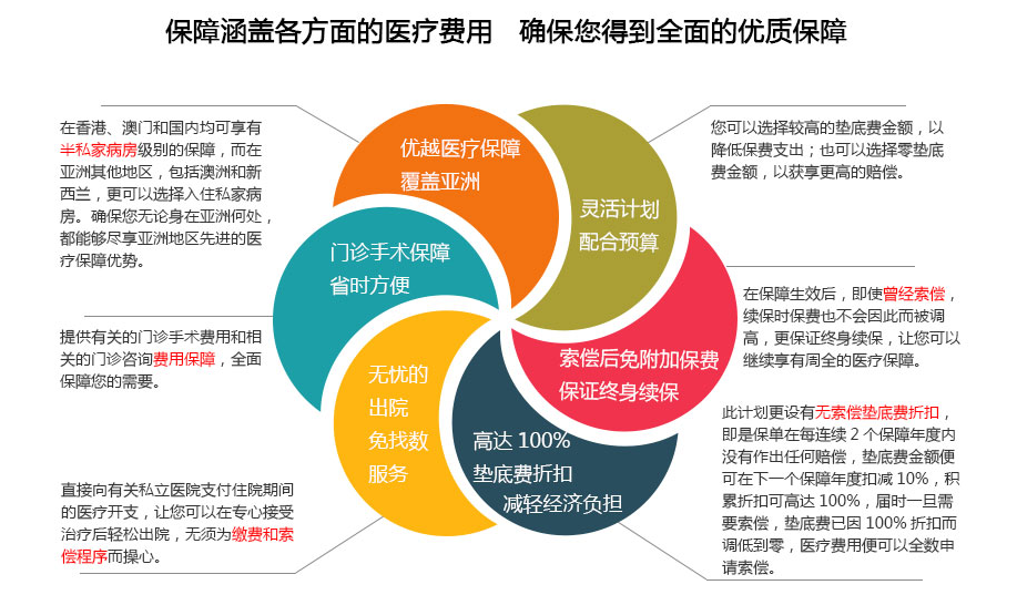 同时,最方便的是特别的免找数服务,指客户生病住进保险公司指定的医院,不用自行垫付医药费用,出院后全部费用由保险公司直接与医院结算,不用带卡带钱住入,无需为出院及索偿程序而操心,专心接受治疗。