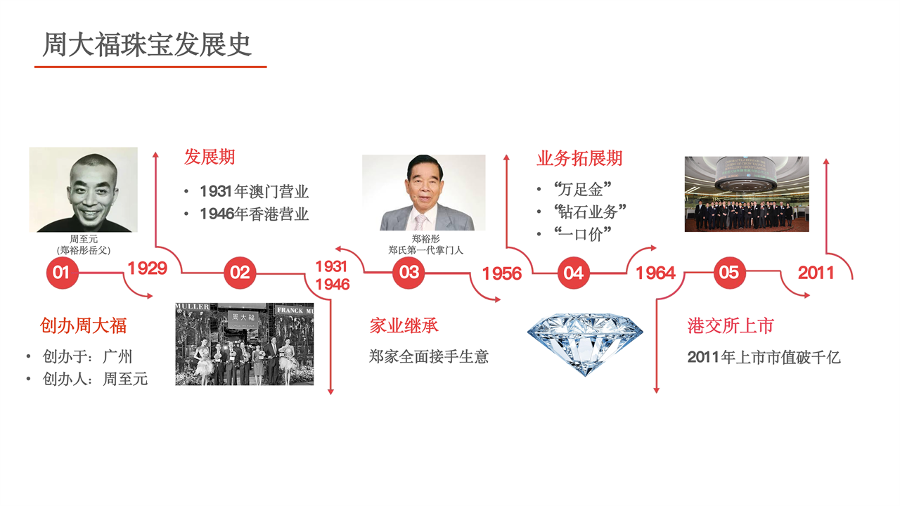 周大福的故事始于1929年,由周至元在广州创办。经历了多年的风雨洗礼,周大福在郑裕彤的带领下,逐步发展成为全球珠宝零售业的佼佼者。从澳门到香港,再到全球各地,周大福的足迹遍布世界各地,其“万足金”、“钻石业务”及“一口价”等创新举措,不仅赢得了消费者的喜爱,更为珠宝行业树立了新的标杆。