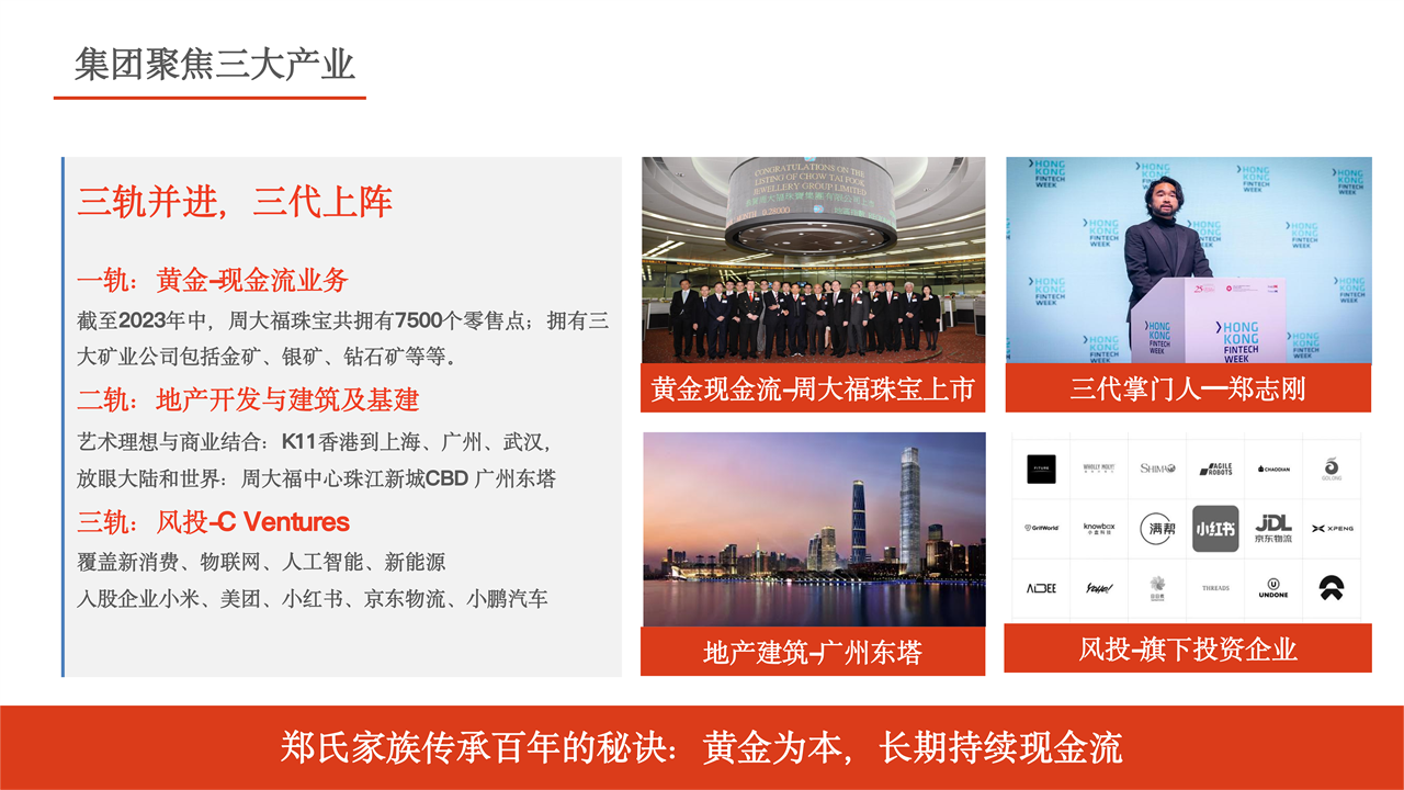 如今的周大福集团,已不仅仅是一家珠宝公司。在郑志刚的带领下,集团聚焦黄金-现金流业务、地产开发与建筑及基建、风投-C Ventures三大产业,实现了多元化发展。从周大福珠宝到周大福中心,再到C Ventures的众多投资项目,周大福集团以其卓越的实力和创新精神,为全球消费者带来了更加丰富多元的生活体验。