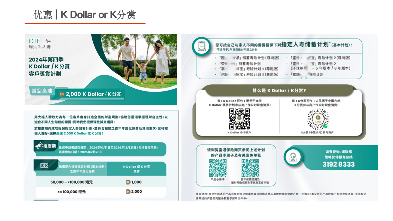 保费回赠优惠活动无疑是投资者们的一大福音。通过参与该活动,投资者不仅能获得高额的保费回赠和KDollar/K分赏优惠,还能为自己的未来增添一份坚实的保障。根据活动规定,投资者在指定日期内成功投保指定的人寿储蓄计划,并符合相应的首年年度化保费要求,即可获得高额的保费回赠。回赠比率根据保费金额的不同而有所差异,具体如下: