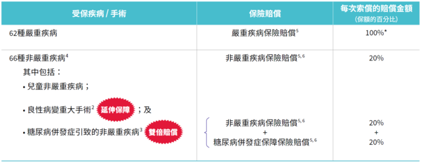 3.癌症、心脏病及中风的多重赔偿:总保障高达保额的500%
