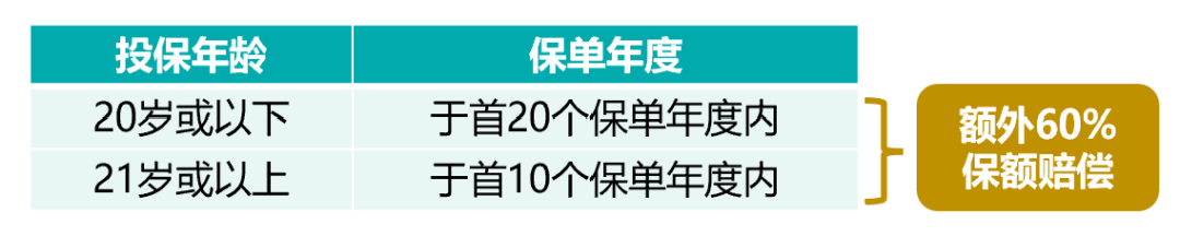 本计划将根据下表支付60%保额之额外身故赔偿或额外生存赔偿,以应付您的不时之需。